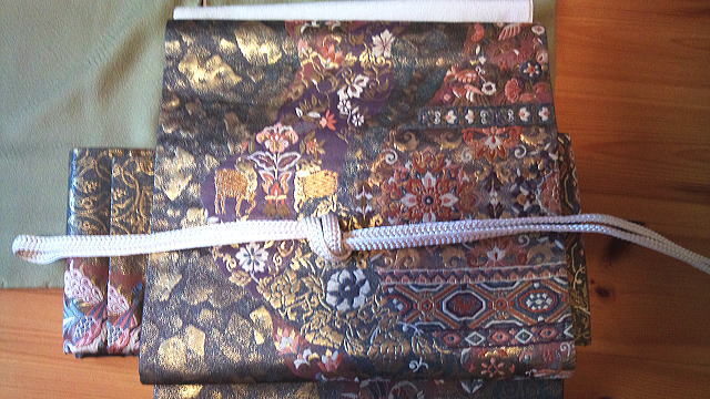 ▼帯は正倉院柄。二重太鼓の作り帯(これも頂き物)