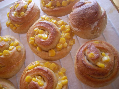 リスドオルを使ったのでモチモチ感がちょっと強過ぎた感じも?中身は、コーン+マヨネーズ、コーン+チーズ、コーン+ハム、コーン+ベーコンの四種。