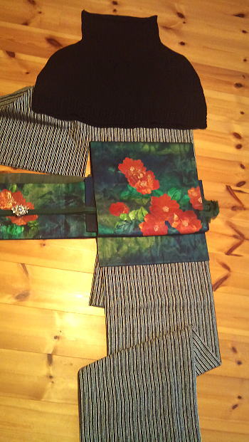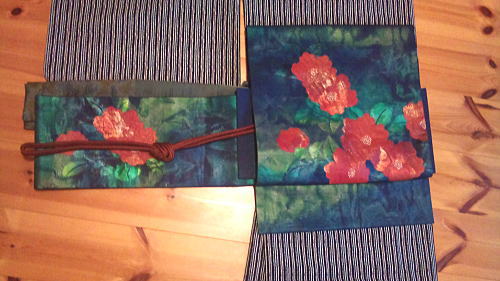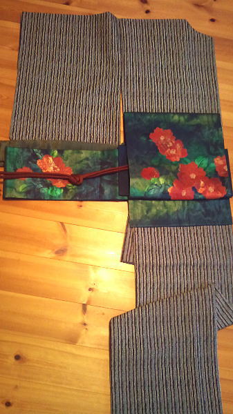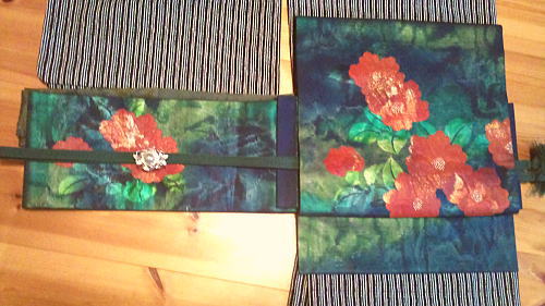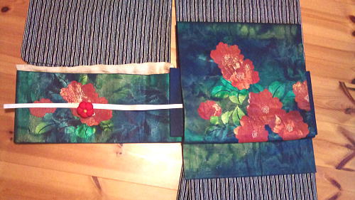 椿の帯・・・巻いてみるとやっぱり「冬」な感じ。