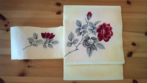 最近手に入れた、「塩瀬」の帯。真紅のバラ模様~♪