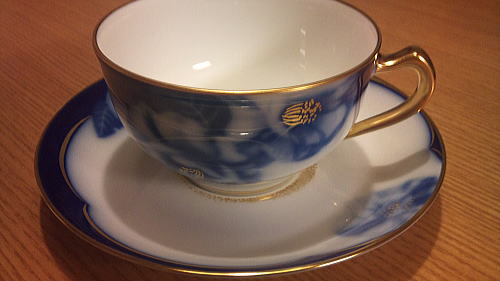 花は「五島椿」で、白と瑠璃紺の対比が美しく、金彩の施し方は芸術の粋だと、その典雅さにほれぼれしているお気に入りのC&Sであります♪