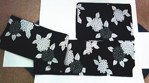 で、彼女が4点選んでくれた中から試着して、「やっぱ、コレがいいわよ」となった、あじさい模様のものを買ってまいりました。