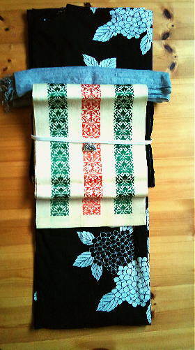 まずは土曜日の声楽のレッスンに行くときの浴衣に合わせてみました。