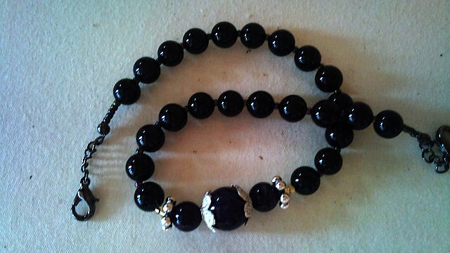 石はオニキス(6mm)と中央部分はアメジスト(8mmと12mm)。