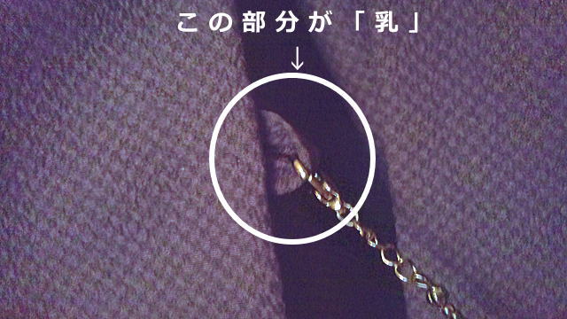 金具はカニカン。本当はS字金具だと「乳」に噛ませやすいのですが、なかなかS字金具が売ってないので、カニカンで代用。