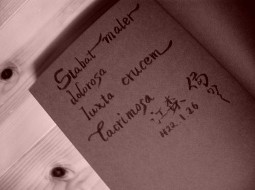 実物は、真紅の紙に黒地のサインですが、コントラストが激しくって、カメラでは拾えなかったのでモノクロで撮影。