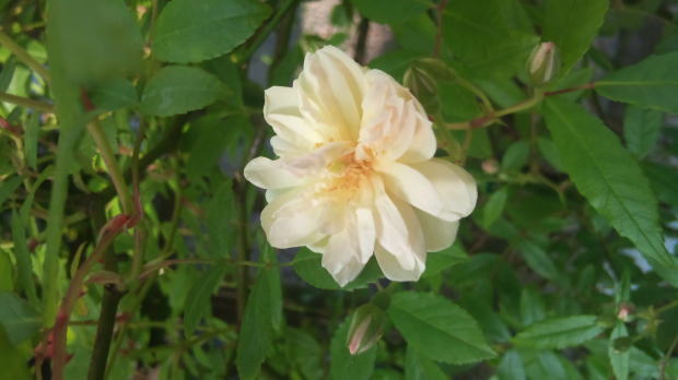 その分しなやかなので誘引しやすい。壁に這わせたり、アーチを作るにはいい薔薇だと思います。