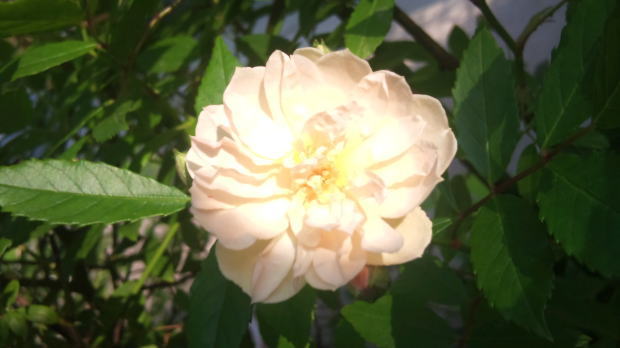 直径2センチにも満たない、可愛らしい可憐なオフホワイトの八重咲き。ポンポン咲きの可愛らしい薔薇は、愛らしい少女の風情であります。