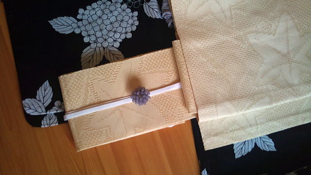 よく見ると「かえで」の模様が入ってて、見た目にも涼しいのであります(夏はやはり作り帯がらくちん~♪)