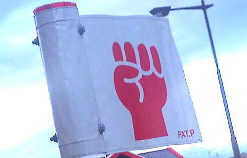これがその旗。通勤時に通る道路の旗を撮影してみたもの。