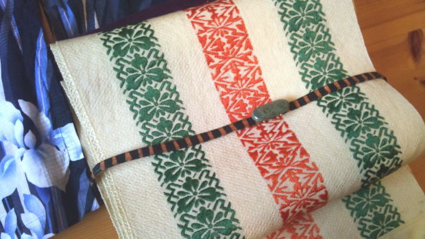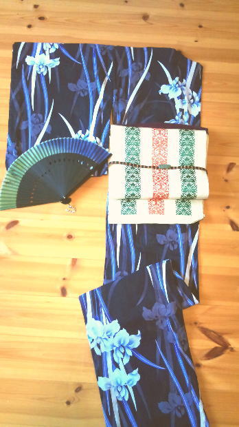 今回は、今年購入の新人さん・菖蒲柄のゆかたに薄手のさらりとした単の袋帯です。